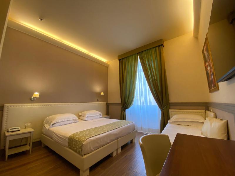 Large hotel, short walk from Terminii and short rides (longer walks) to historic sites. Location was great for proximity to other sites but neighborhood was otherwise on a busy city street and very congested. Room was very clean and area seemed safe. Lobby was cramped and often crowded, may explain why staff was sometimes cranky. Air conditioning in room was weak. Breakfast buffet was very good.