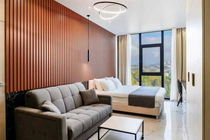 В «Метрополе» представлены студии, стандартные апартаменты и более просторные люксовые категории. Во всех вариантах размещения есть кухонная зона и панорамные окна.