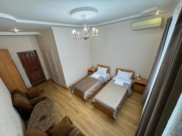 Обслуживание . Чистота номера. Полулюкс за свою цену отличный Есть все удобства полностью . Завтрак платный 300 рублей с человека. Но и рядом есть хорошая столовая -