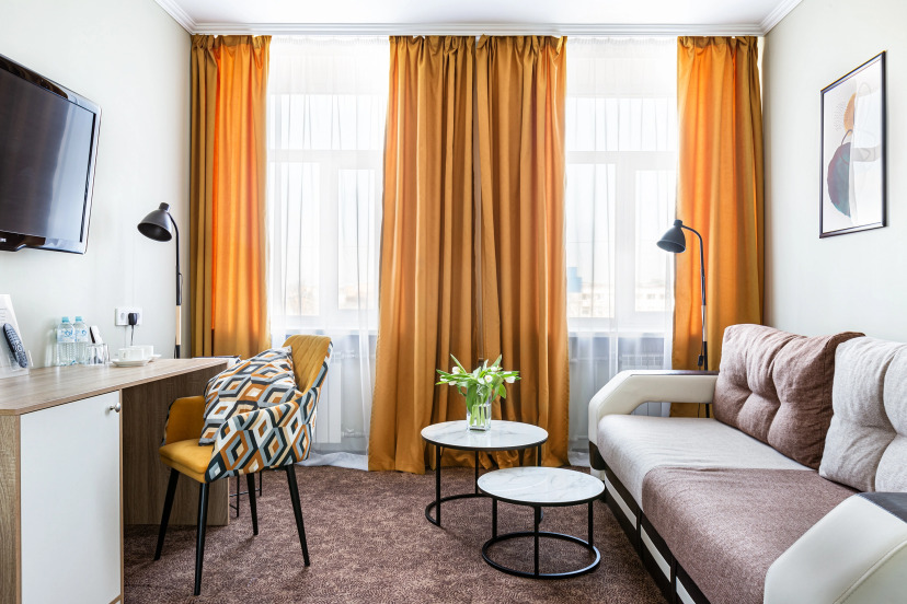 • Люкс «Санкт-Петербург» двухкомнатный – 32 кв. м, с двуспальной кроватью или двумя односпальными кроватями