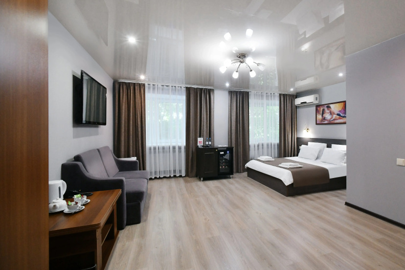В номере чай,кофе,вода 0,5.удобная кровать,4 подушки,одеяло теплое.приставка Ростелеком ,телевизор большой.14 номер В номере по всему полу было не убрано,куча женских волос на полу.очень заметно,что не пылесосили.не приятное впечатление.